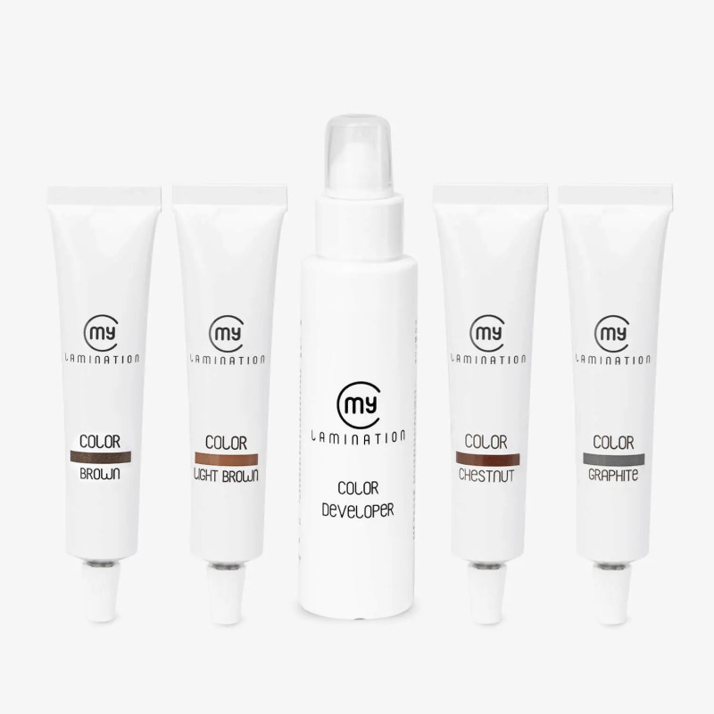 Dieses komplette Färbe-Kit wurde speziell für die professionelle Anwendung bei Wimpern- und Augenbrauenbehandlungen entwickelt und eignet sich ideal für Laminierungs-Behandlungen. Es enthält 4 perfekt abgestimmte Farbnuancen sowie einen Color Developer für ein definiertes, natürliches und gleichmäßiges Farbergebnis.