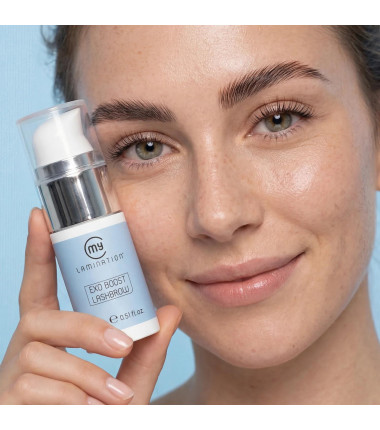 EXO BOOST LASHBROW von My Lamination ist ein intensives Profi-Serum zur gezielten Pflege von Wimpern und Augenbrauen. Die innovative Formel kombiniert pflanzliche Exosomen aus Malve, pflanzliche Phytokeratin-Komplexe sowie ausgewählte botanische Extrakte, um die Haarstruktur zu stärken, den Haarfollikel zu unterstützen und die natürliche Schönheit von Wimpern und Brauen sichtbar zu verbessern.